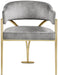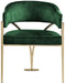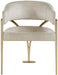Give your dining area a show-stopping new look when you bring home one or more of these Madelyn velvet dining chairs. The Madelyn chair is all about comfort and style with its barrel-back design and its sophisticated lines. Upholstered in luxurious beige velvet that's inviting to the skin and super soft to the touch, this chair features an iron metal frame for durability and lasting use in your busy home. The brushed brass finish adds a final modish touch to this lovely dining chair.