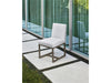 The plush upholstered seat of the Carter Side Chair rests atop its perfectly angular base, while its quaint fabric detailing adds a unique and unexpected touch.