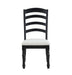 Elegantly sophisticated, this black and white farmhouse chair is a modern interpretation of the classic farmhouse chair.The Odessa Side Chair features an intricate ladderback design and elegantly turned legs crafted from distressed Asian hardwoods. Generous 3-inch cushioned seat ensures long gatherings are comfortable without compromising style. With its easy-care polyester fabric, this chair proves that you can have it all – a chair that looks as good as it feels.