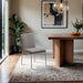 With an effortless sophistication, the Reeves chenille fabric upholstered dining side chair elevates your dining space with its soft fabric and elegantly textured design. Supported by sturdy, hand-forged brushed silver metal legs, this chair blends refined comfort with artisanal craftsmanship. Its clean silhouette and plush upholstery make it a perfect addition to modern and transitional interiors, offering both style and everyday functionality.