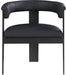 Rehab your dining area with these Romeo vegan leather dining chairs, sold as a set of two. These chairs offer both style and comfort, with soft vegan leather seats and backs providing a sleek and inviting look that meshes well with an array of dining tables. The matte black metal frame ensures durability and modern aesthetic appeal, while the chairs' curved backs deliver lumbar support for a relaxed dining experience.