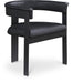 Rehab your dining area with these Romeo vegan leather dining chairs, sold as a set of two. These chairs offer both style and comfort, with soft vegan leather seats and backs providing a sleek and inviting look that meshes well with an array of dining tables. The matte black metal frame ensures durability and modern aesthetic appeal, while the chairs' curved backs deliver lumbar support for a relaxed dining experience.