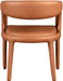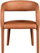 Modernize your home with this Sylvester cognac vegan leather dining chair. Featuring soft and durable cognac vegan leather upholstery, this chair offers you a comfortable and long-lasting place to sit while you dine. It's fully upholstered, giving it a solid look that is ideal for any contemporary home. Its rounded back provides upper back support, while its semi-open design makes a fashionable decorative statement that is sure to catch the eyes of anyone who joins you for dinner.