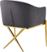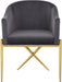 Spread elegance and modernity to your dining room with this Xavier velvet dining chair from Meridian Furniture. This beautiful chair features a simple barrel seat with a plush cushion and back, ensuring that every meal is a comfortable one. The steel legs provide durable support while you sit, and an "X" leg in the back lends the chair an uber-modern vibe. finishing on the base is sleek and chic, giving this chair a contemporary edge that's well at home in any modern dining room. Sleek velvet upholstery is durable and tough yet soft against your body, elevating meal times to a luxurious experience.