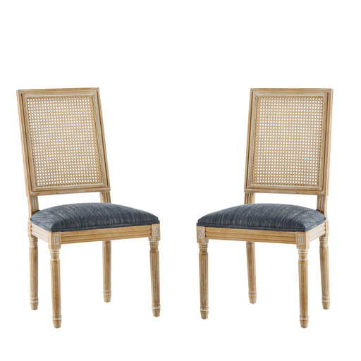 French Country Dining Chair With Rectangular Cane Backrest And Smooth Upholstered Seating