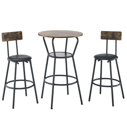 View full detailsRustic Brown Round Bar Table And Stool Set With Shelf, Upholstered Stool With Backrest - Antique Brown