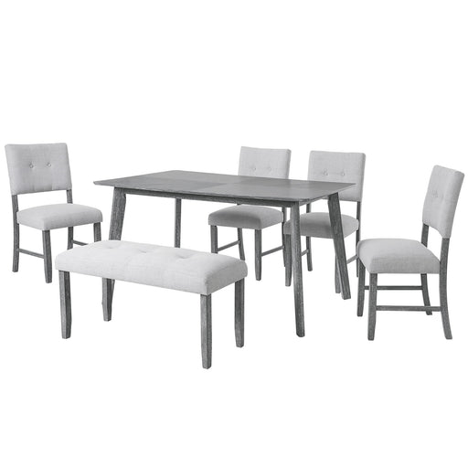 - 6 Pc. - Rectangular Dining Room Extension Table, 4 Upholstered Side Chairs, Upholstered Bench (2)