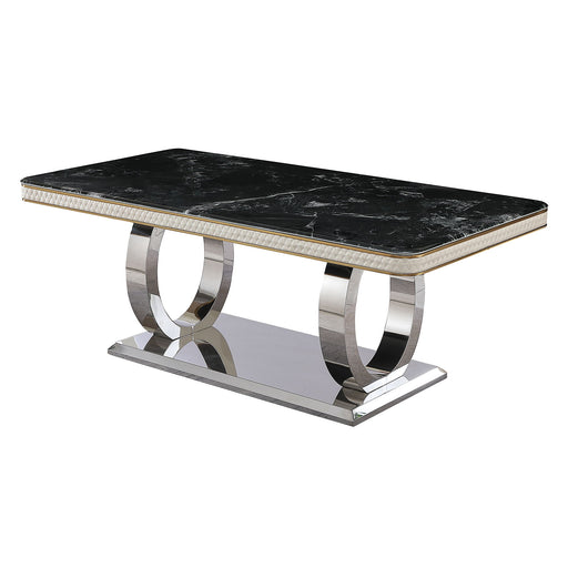 View full detailsLuxury Modern Dining Table With 6 Chairs Marble Top Titanium Plated Base - Black