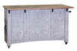 Pueblo - Kitchen Island With 3 Drawer / 2 Sliding Doors / 2 Mesh Doors - Antiqued White / Brown
