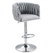 360 Degree Swivel Bar Stools Adjustable Counter Height Bar Chairs With Woven Back & Footrest, Silver Chromed Bar Stools For Kitchen Island (Set of 2) - Gray