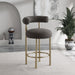 Give your kitchen counter or home bar a fresh face with this Bordeaux boucle fabric stool. This stool features rich boucle fabric upholstery on the curved back and seat, so guests sit comfortably for pancake breakfasts or their favorite spirits. The iron metal frame is durable, tough, and sturdy, so it holds up to long-term enjoyment by family and friends. A brushed brass finish lends the stool an uber modern feel.
