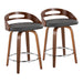 Cassis - Mid-Century Modern Fixed Height Counter Stool With Swivel With Round Footrest (Set of 2) - Walnut / Gray