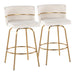 Cinch - Glam / Art Deco Fixed Height Counter Stool With Swivel With Round Footrest (Set of 2) - Gold / Cream