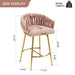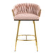 Counter Height Bar Stools Kitchen Island Counter Bar Stool With Hand - Wave Back, Golden Chromed Base And Footrest (Set of 2) - Pink