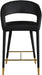 Settle in for a meal with friends seated in this Destiny stool. Soft upholstery makes this stool a sleek and inviting option for pairing with your favorite counter table. The rounded back adds comfort to mealtime and lends the stool a chic, eye-grabbing touch, while tapered legs topped with gold tips give the stool an elegant finish.