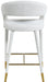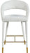 Settle in for a meal with friends seated in this Destiny boucle fabric stool. Soft cream fabric upholstery makes this stool a sleek and inviting option for pairing with your favorite counter table. The rounded back adds comfort to mealtime and lends the stool a chic, eye-grabbing touch, while tapered legs topped with gold tips give the stool an elegant finish.