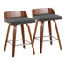 Maya - Mid-Century Modern Fixed Height Counter Stool & Swivel With Square Footrest (Set of 2) - Walnut / Charcoal