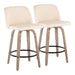 Toriano - Mid-Century Modern Fixed Height Counter Stool With Swivel With Round Footrest (Set of 2) - White Washed / Cream