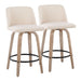Toriano - Mid-Century Modern Fixed Height Counter Stool With Swivel With Round Footrest (Set of 2) - Whitewashed / Cream