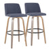 Toriano - Contemporary Fixed Height Barstool With Swivel With Round Footrest (Set of 2) - Light Gray / Blue