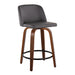 Toriano - Mid-Century Modern Fixed Height Counter Stool With Swivel And Round Footrest (Set of 2) - Walnut / Gray