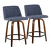 Toriano - Mid-Century Modern Fixed Height Counter Stool & Swivel With Round Footrest (Set of 2) - Walnut / Blue