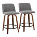 Toriano - Contemporary Fixed Height Counter Stool With Swivel & Round Footrest (Set of 2) - Walnut / Gray