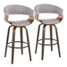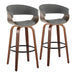 Vintage Mod - Mid-Century Modern Fixed Height Barstool With Swivel & Round Footrest (Set of 2) - Walnut / Light Gray
