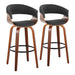 Vintage Mod - Mid-Century Modern Fixed Height Barstool With Swivel & Round Footrest (Set of 2) - Walnut / Charcoal