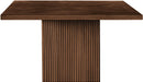 Give your dining room or eat-in kitchen a casual vibe with this Belinda table. A solid wood base and resilient construction offers impeccable durability and remarkable beauty. The square top rests on the fluted base, providing oodles of elbow room for family and friends to get comfortable while they nosh on their meal.