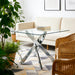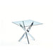 Dining Table With Cross Metal Leg And Tempered Glass, Modern Space Saving Kitchen Table For Living Room Legs, Square Table - Chrome