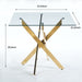 Dining Table With Cross Metal Leg And Tempered Glass, Modern Space Saving Kitchen Table For Living Room, Chrome Legs, Square Table - Golden