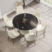 Modern Artificial Stone Round Plywood Base Dining Table, Can Accommodate 6 People, (Not Including Chairs) - Black / Beige