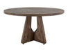 Natural Teca, Table. The Natural Teca collection features a beautifully crafted dining table that highlights the beauty of teak wood. It features a round top crafted from mango and teak veneer, finished in a rich brown that highlights the natural wood grain. The smooth, polished surface exudes warmth. The deep brown lacquer mango wood base adds a modern balance. The Natural Teca round table set combines style and functionality, making it a versatile addition to any interior design.
