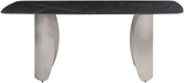 Make even the most casual meals an elegant affair when guests gather around this Niya dining table. This handsome table is part art, part dining room must-have, with its elegant yet durable marble-look sintered stone top and its brushed curve bases. Diners have loads of elbow room at this large dining table, so they stay cozy from appetizers through dessert. Add the chairs of your choice for a complete dining room rehab in an instant.