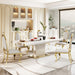 Top Dining Table With Gold Finish Corner, Pillar And Gold Finish Stainless Steel Base - White