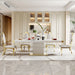 - Elegant Design: Exudes sophistication with a minimalist design and clean lines. The seamless integration of MDF tabletop with stainless steel base enhances the overall aesthetic appeal of the dining area.