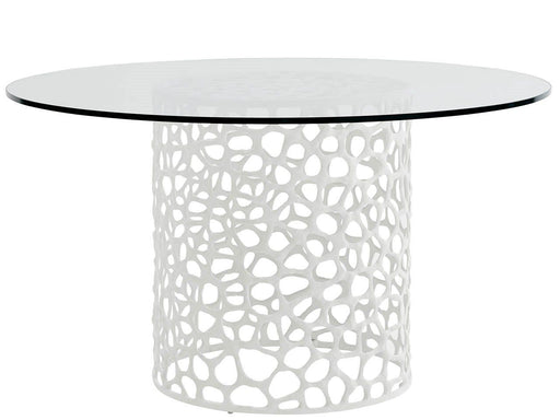 The Coral Dining Table features a round glass top supported by a coral-inspired cast aluminum base. This dining table's transparent top enhances th...