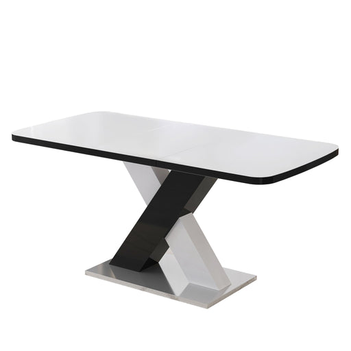 Rectangle Dining Table, Stretchable, Table Top With X Shape And Legs And Base - White / Black