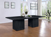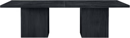 Even the smallest, most intimate dinner feels like an event when you're seated at this Belinda black modular dining table. Crafted with a solid wood base and a black finish oak wood veneer MDF top, its square top with fluted base exudes contemporary charm. The table top's thickness and natural wood grain variations add unique character, ensuring each piece is one-of-a-kind. Modular to create infinite configurations, it blends functionality with style for memorable dining experiences in any space.