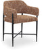 Blending effortless comfort with modern design, the Dame polyester fabric upholstered dining chair offers a relaxed, trendy look. A matte black iron frame provides contrast against the polyester textured weave of light brown, cream, and beige hues. Place it in dining spaces or casual corners for seating that feels as good as it looks.