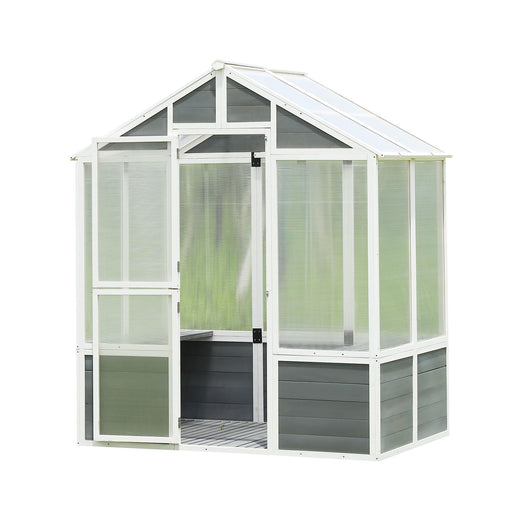 View full detailsGreenhouse, Wooden Greenhouse Polycarbonate Garden Shed For Plants, Walk-In Outdoor Plant Gardening Greenhouse For Patio Backyard Lawn, Grow House With Front Entry Door - White / Gray