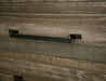 - Multi-step hand-painted water-based acrylic lacquer finish in gray and brown tones for an updated “reclaimed wood” look.