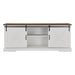 Farmhouse Sliding X Barn Door 70" TV Stand For 80" TVs - Rustic Oak / Brushed White
