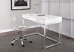 - Desk constructed of chrome finished iron base and apron with acrylic legs and engineered wood in a white painted finish. Acrylic swivel desk chair is height adjustable and features casters with five leg chrome base for added stability