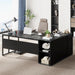 L-Shaped Executive Desk & Cabinet Storage, Office Furniture Set For Home - Gray / Black