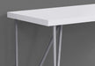 - Durable Construction: The thick panel tabletop with a smooth white laminated finish is complemented by sturdy silver metal legs and triangular support bars for enhanced stability and durability.