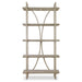 A Classic Contemporary Piece To Transcend Styles, The Sway Etagere Features A Metal Framework Finished In Soft Silver Leaf With Light Antiquing. Shelves Are A Mango Wood Veneer In Distressed Gray With Bone Ivory Undertones.