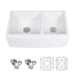Sink 33" Double Bowl 60 / 40 Kitchen Sink With Deep Basin And Grids - White