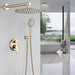 Wall Mounted Shower System With High Pressure Rain Shower Head & 5 Function Handheld - Brushed Gold